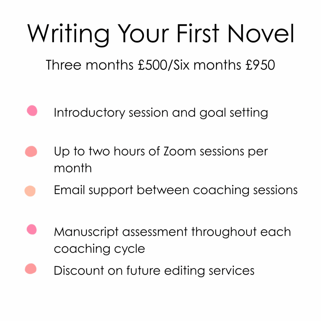 I offer one-to-one coaching sessions for aspiring or seasoned writers. Following an initial consultation I will put together a bespoke coaching package that meets your writing journey and budgeting needs. Between sessions you may be working on your manuscript; I’ll be reading sections of your work; you’ll be revising chapters or perhaps I’ll be preparing resources to support you through the tricky bits.