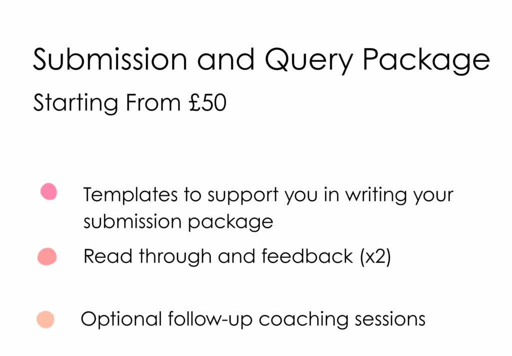 Whether you’ve had a go at putting together your submission package already, or you’re starting from scratch, my query and submission package offers advice and guidance in putting together your submissions to agents and publishers, as well as feedback on your query letter and submission chapters.